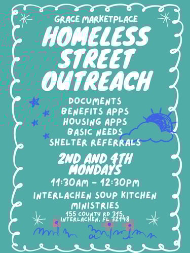 Grace Marketplace Assistance with Benefits, Homelessness, DL/ID Cards Mondays 11:30-12:30.