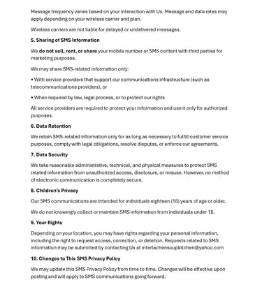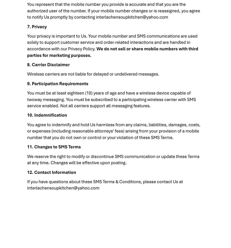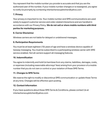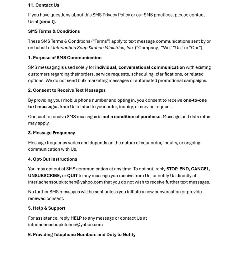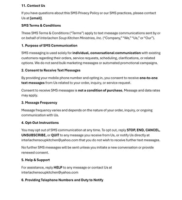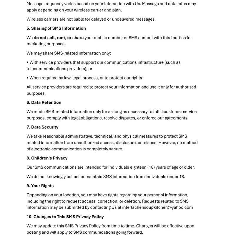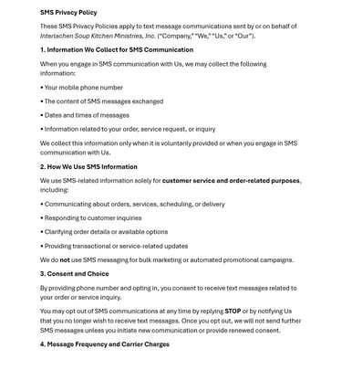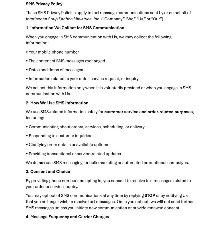 These policies explain how we handle SMS messages for Interlachen Soup Kitchen Ministries.